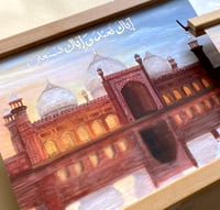 This print of my original painting from my Call to Prayer collection represents the middle prayer of the day in Islam, the late part of the afternoon. The details of the carved red sandstones in the Badshahi Mosque’s beautiful Mughal architecture combined with the warm sky will immediately transform a space and make it look more aesthetically pleasing.